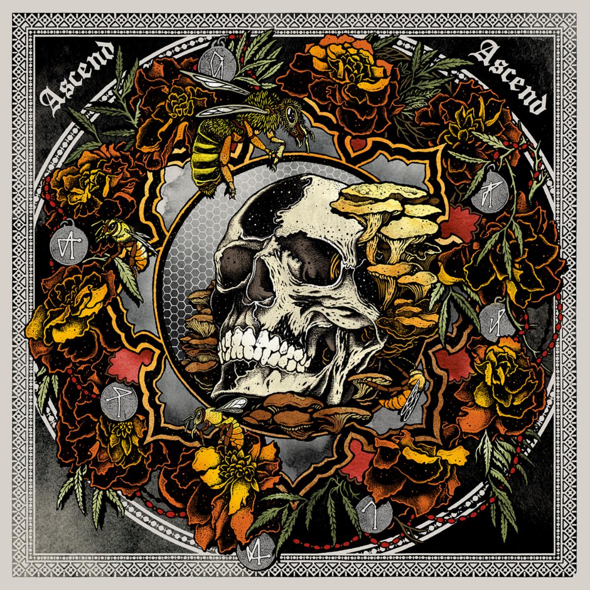 “I wrote Ascend Ascend over the course of twenty days – coming in and out of trance states while secluded in the tower of a 100-year-old church,” STUCKY says. In the live performances, he recited the book in its entirety from the confines of a magic circle – drawn with sigils and arcane seals on the floor – ringed with beeswax candles, incense, and live marigolds planted in an outer rim of soil.